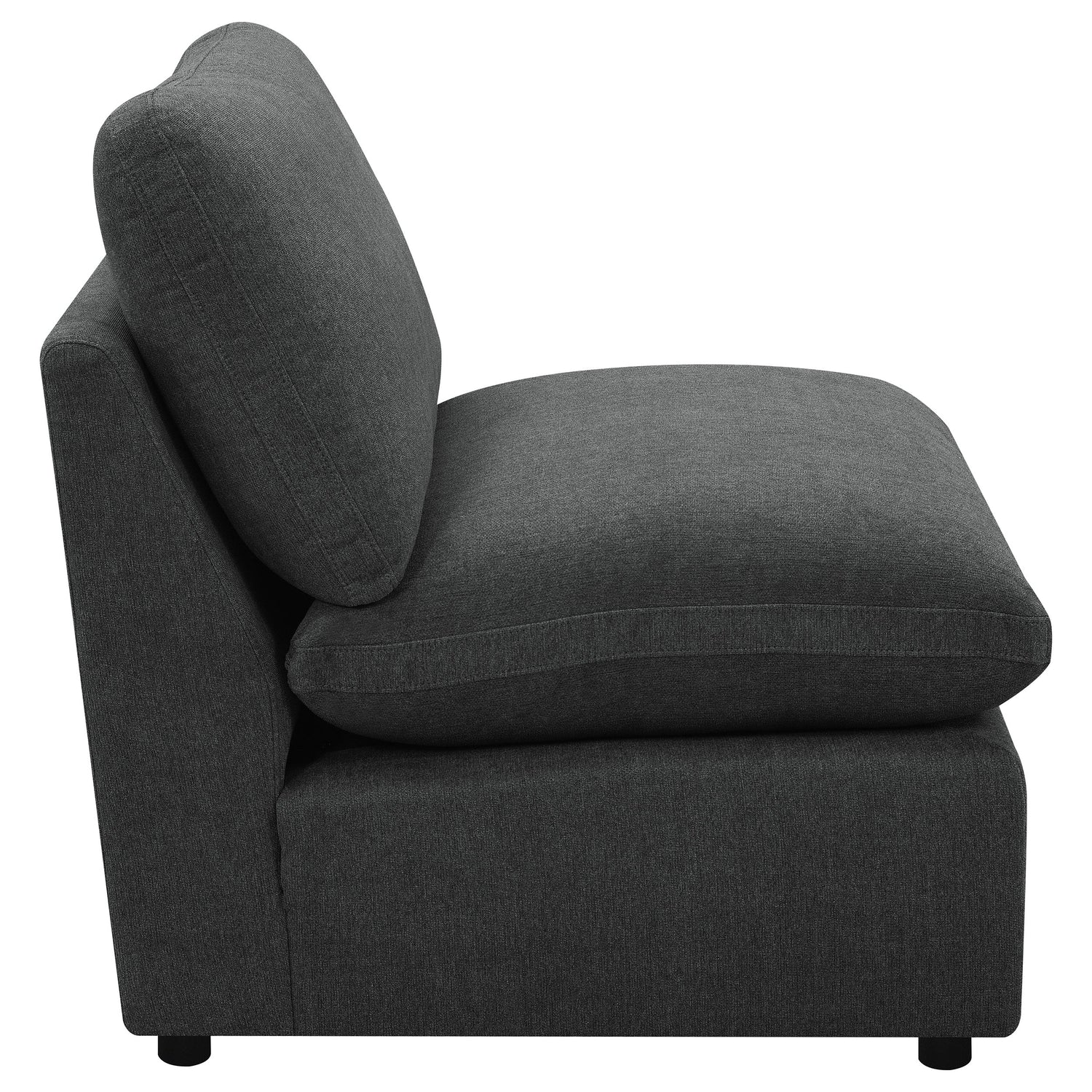 Add versatility to your modular sectional with the armless chair, designed to seamlessly blend with your existing furniture. This chair features a sleek, modern design and premium down-like filled cushions for exceptional comfort. Perfect for creating additional seating without taking up too much space.