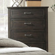 ALAINA Chest, 34"W X 18"D X 48"H, 122.1lbs. An elegant walnut finish, this chest is perfect for the mature-minded. It's a no-nonsense design that projects an air of integrity. Your guests will be impressed with the old fashioned appeal found in this chest.