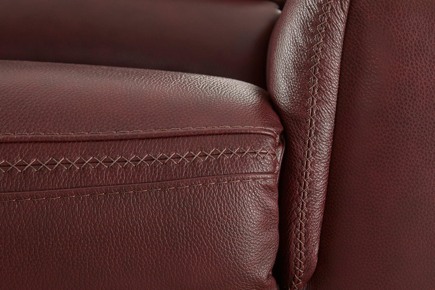 Impressive in scale while keeping an air of refinement, this power reclining loveseat stuns with a combination of soft, supple leather and perfectly matched faux leather upholstery in garnet. Sink into the seating area and cater to your comfort with one-touch power reclining and an adjustable headrest. Complete with USB charging, this loveseat makes a surefire statement in your contemporary living room.