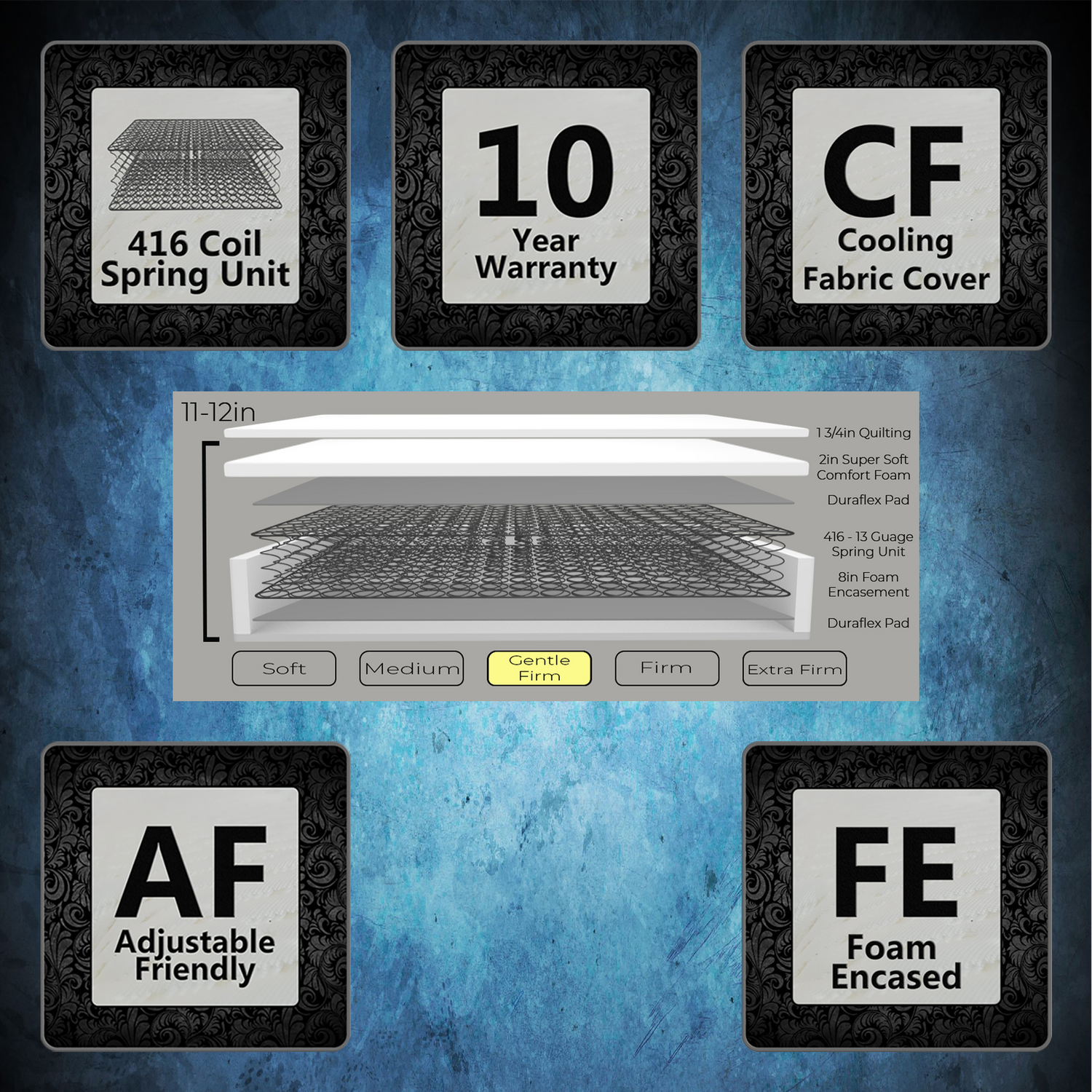 The Aria Eurotop is a perfect blend of firmness, comfort and temperature. It is foam encased which give you edge to edge support throughout the entire mattress. The Cool Silk cover is a proven performance fabric technology. It is made using Japanese yarn which is 40% cooler than traditional fabric.