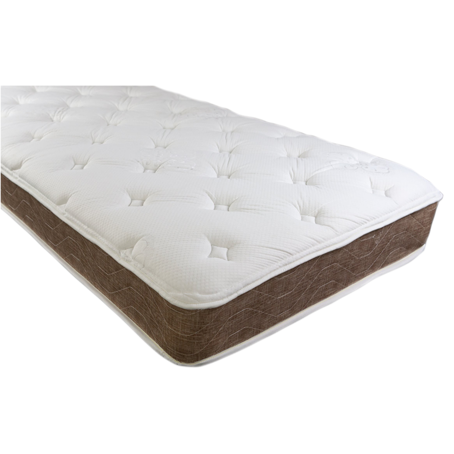 This is a 3/4 quilted, 390 spring mattress. It comes with FACTORY select fabric. This fabric is usually overage fabric from our higher end mattresses.