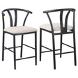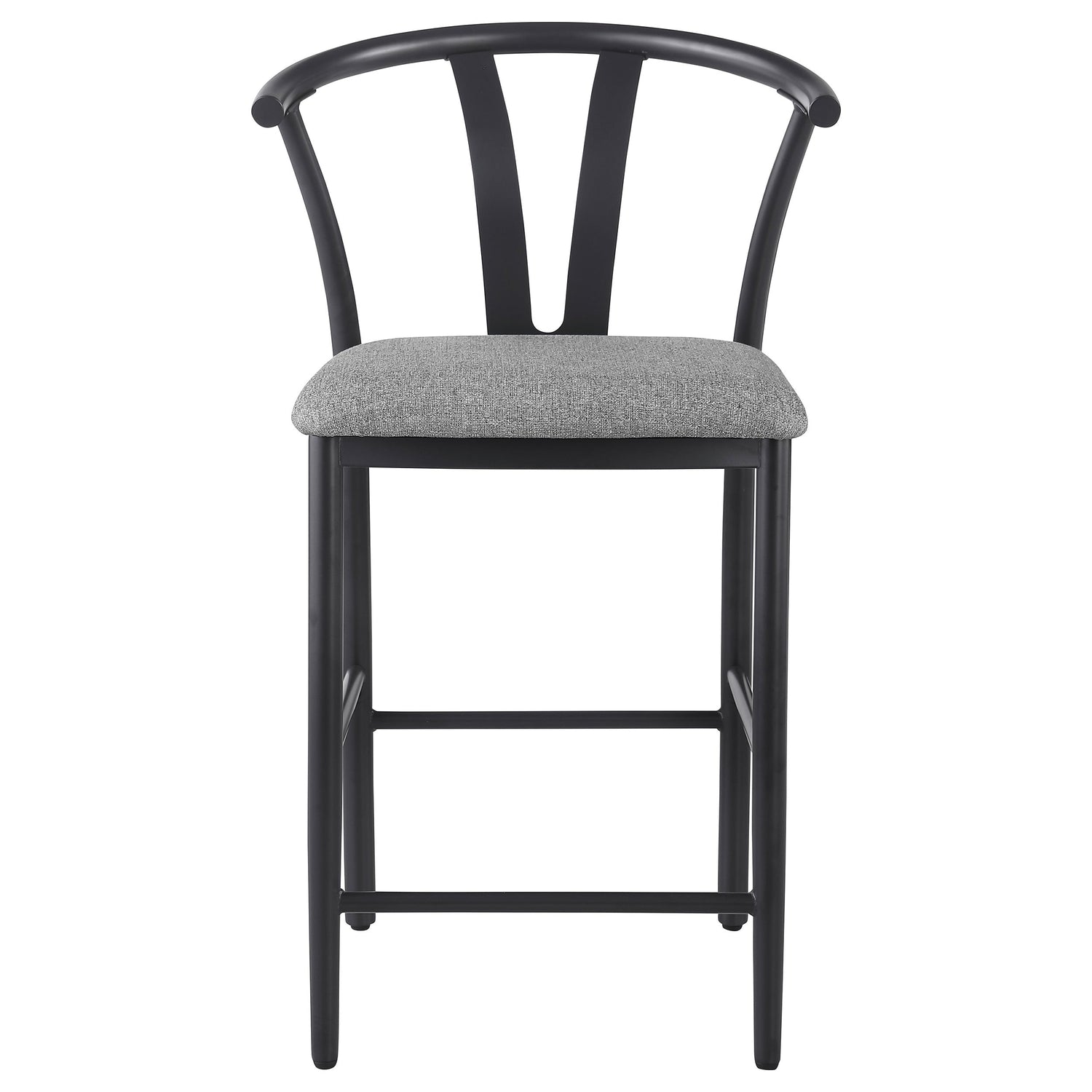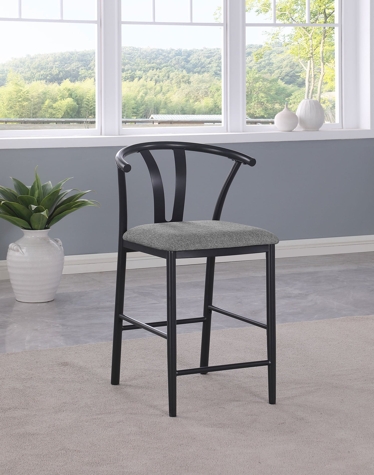 Inspired by Danish design, this counter height wishbone chair brings a touch of modern elegance to your dining or bar area. Its sleek metal frame offers exceptional sturdiness and durability, ensuring long-lasting use while maintaining a minimalist aesthetic. The foam-padded seat is upholstered in soft, textured fabric, providing comfortable seating for hours of enjoyment. Whether used at a kitchen island or counter-height table, this chair combines style, comfort, and functionality in a timeless design that enhances any space.