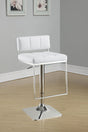 Refresh a modern space with a dynamic accent. A slender silhouette makes this bar stool perfect for a redesigned contemporary kitchen or dining space. Sleek white upholstery with channeling covers linear designed cushions. Chrome finish metal forms a base and cool U-shaped footrest. Adjustable seat heights conform to a coordinating pub table or counter.