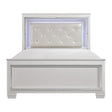 • Tufted button Bi-cast Vinyl (faux leather) upholstered headboard with LED lighting and beveled mirror frame