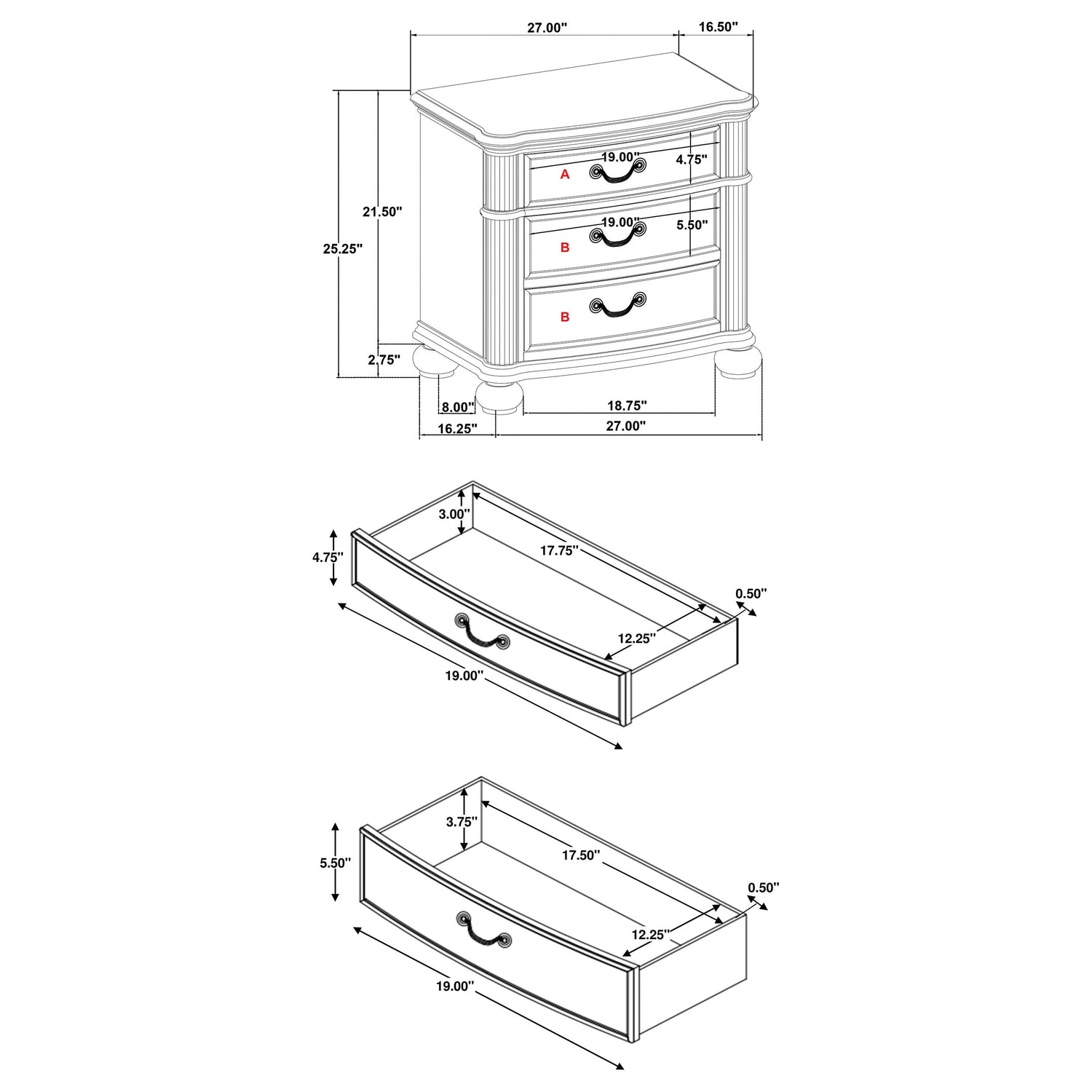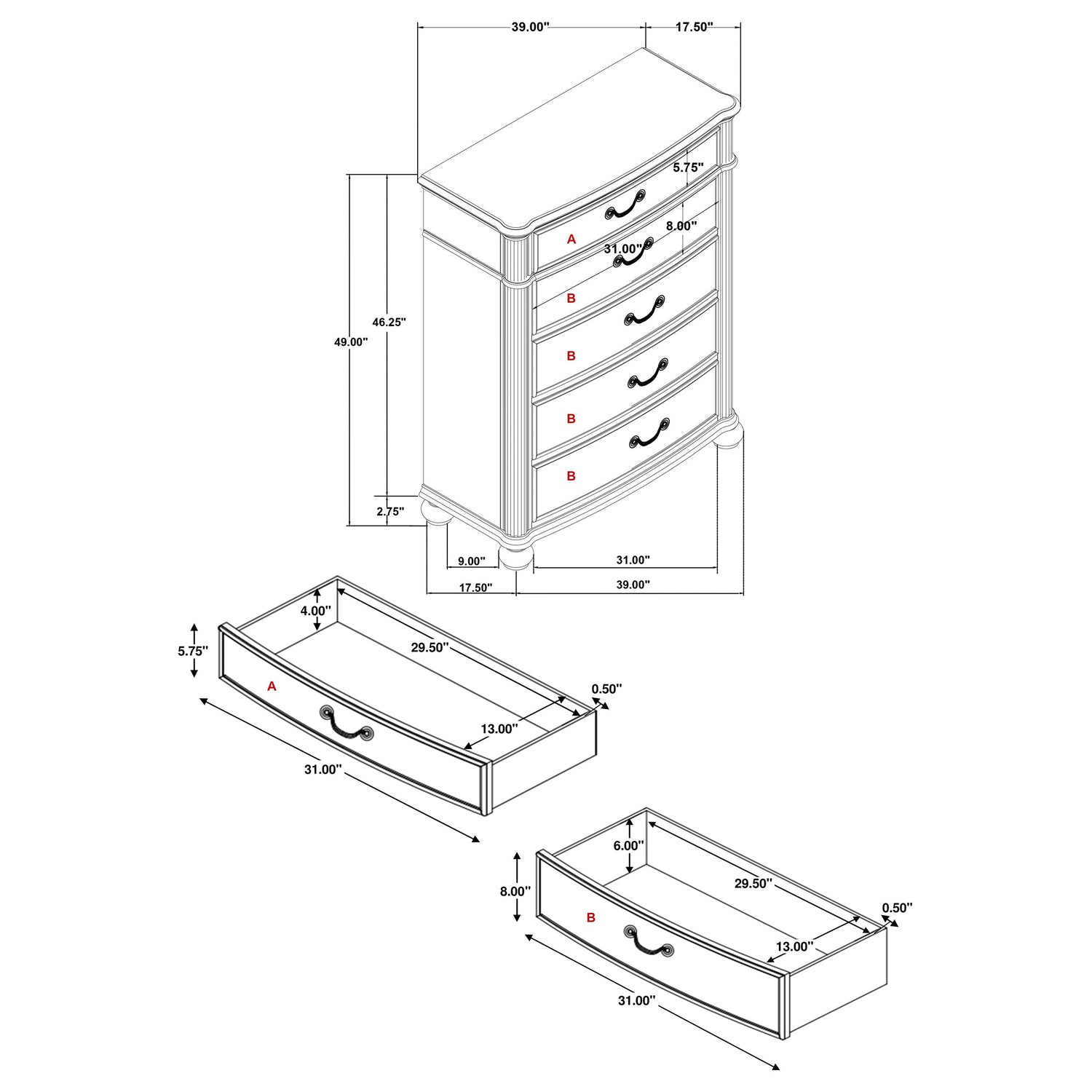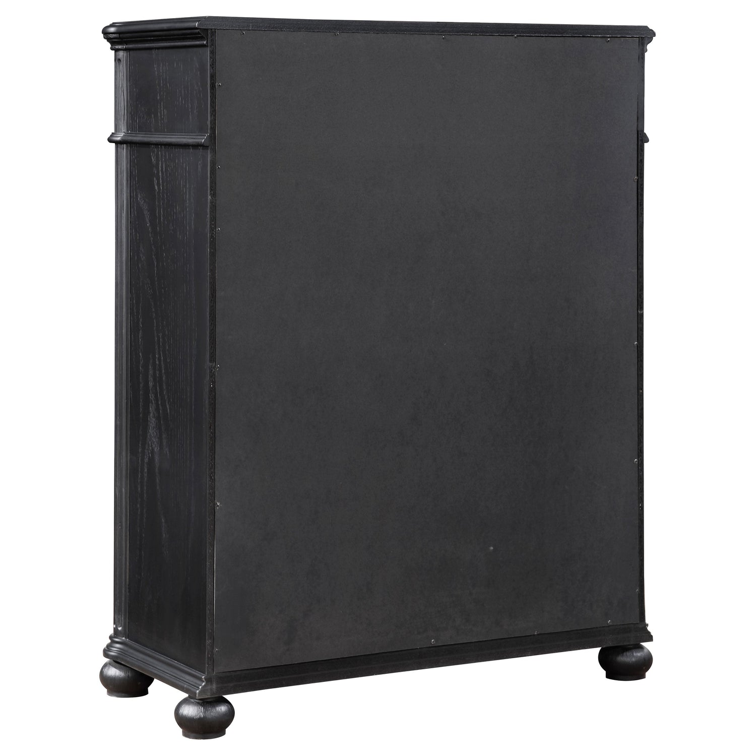 Embrace the essence of luxury with this five-piece bedroom set, featuring an Eastern King bed as its centerpiece. The bed's lavish tufted headboard and detailed woodworking evoke a sense of grandeur and comfort. Accompanying the bed, the nightstand and dresser offer ample storage, with the dresser's nine drawers and the nightstand's felt-lined top drawer. The dresser mirror and additional chest enhance the room's functionality and style, their dark finish and ornate hardware exuding elegance. This set is a harmonious blend of style, comfort, and practicality, perfect for creating a bedroom fit for royalty.
