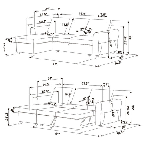 Ashford Chenille Upholstered Sleeper Sectional Sofa Greige