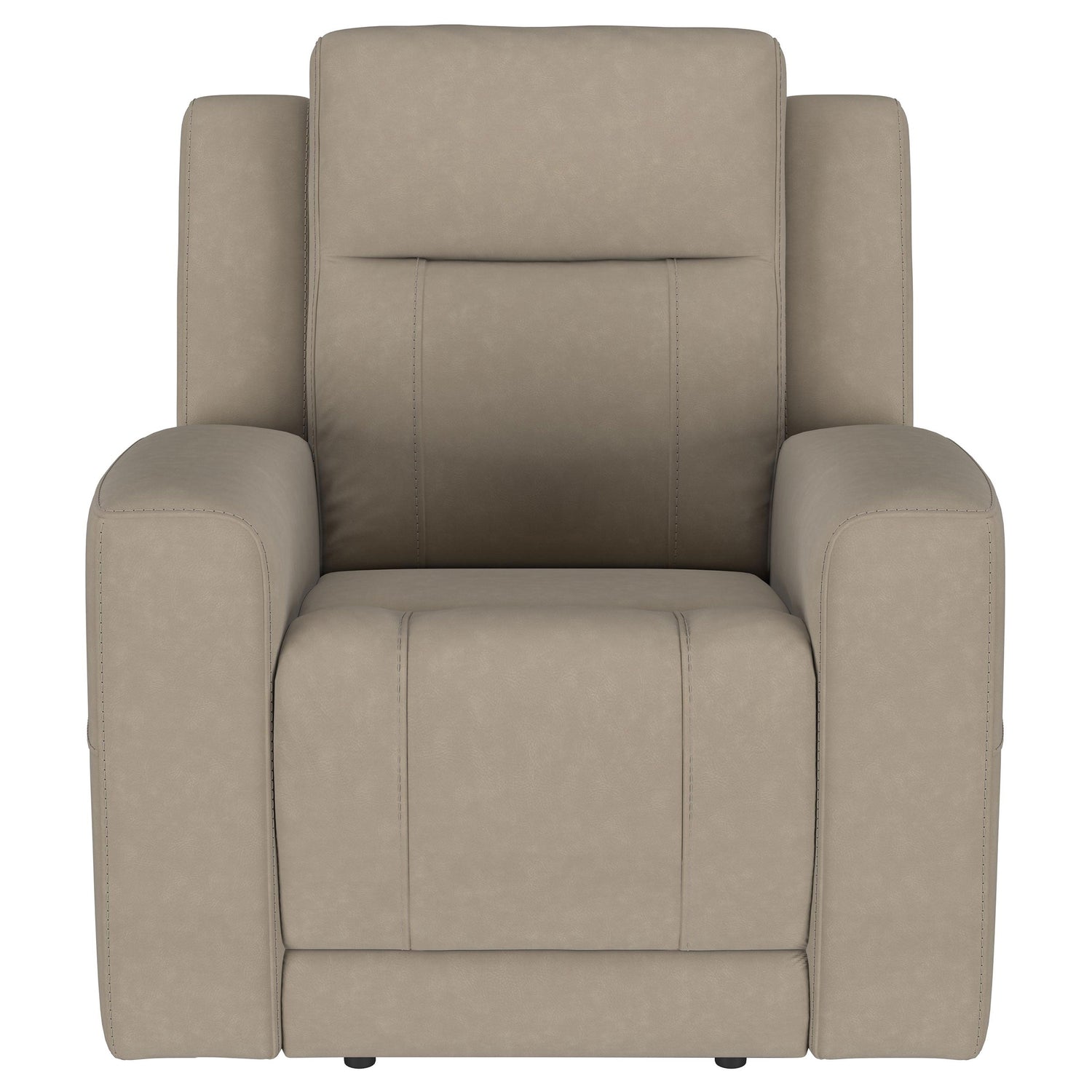 Kick back in luxurious indulgence with a modern rocker recliner. Expertly designed for a sleek, refined look that blends in contemporary living spaces, the recliner features matte suede-like upholstery in a neutral hue. Its clean lines and track arms blend seamlessly with surrounding decor, offering a crisp look and feel. The recliner sports a fully covered leg rest, perfect for relaxing in the evening or spending a day watching favorite movies. It splash cushioning is tufted to create superior support and comfort and the whole family.