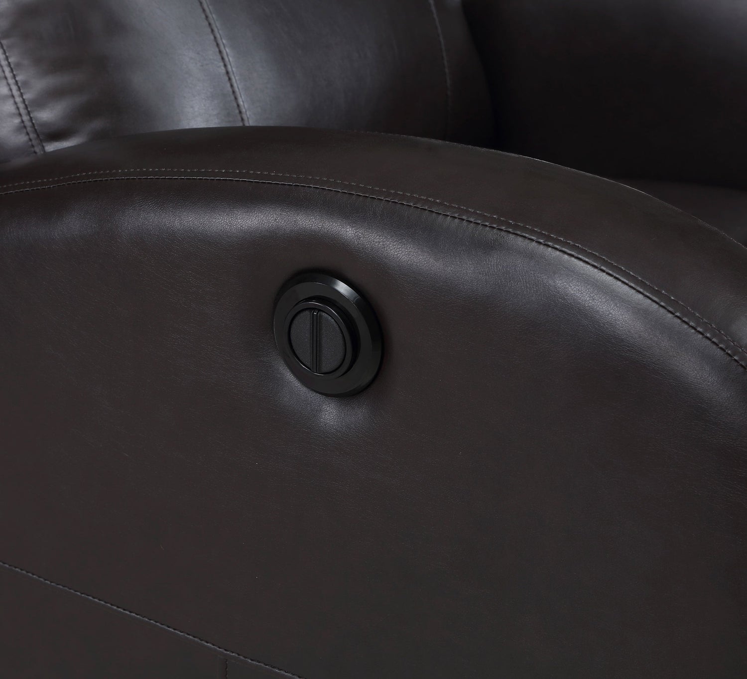 Create the perfect place for stylish lounging with a modern power recliner in your den or living room. It delivers a compact silhouette, offering on-trend style, with neutral faux leather upholstery. Its tall, slim back and plush seat feature foam cushioning, ensuring excellent comfort whether enjoying a movie or catching up with a friend. The power recline functionality is operated with buttons on the right-hand side, ensuring smooth performance. It's complete with track arms with an upward sloping profile perfect for contemporary and modern living spaces.