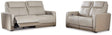 Double down on sleek style with this power reclining package. It has a streamlined, space-conscious appeal, with two-tone upholstery in neutral hues creating subtly striking visual intrigue. And with one-touch reclining, adjustable headrests and wireless charging, this set combines contemporary function and fashion in a clean-lined design.