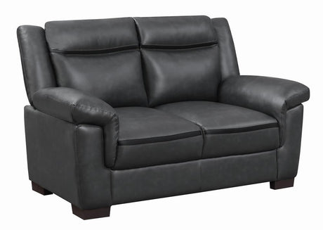 Avonlea Sloped Arm Upholstered Loveseat Trim Grey