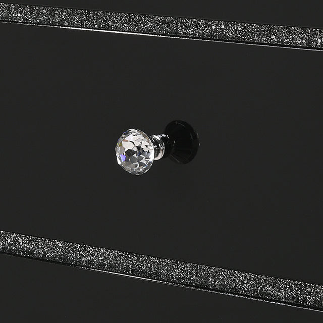For a minimalistic space, this ensemble sets the perfect tone. With a sleek high gloss finish, each piece exudes a sense of confidence that's hard to ignore. The straight and sleek lines highlight the simple silhouette, interrupted only by its hallmark feature--glitter-filled panel gaps that add just enough glam to this stunner of a set.