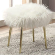 Caoimhe White/Gold Ottoman, 16"W X 16"D X 18"H, 11.7lbs. Textures are the key to making your room stand out. You WILL stand out with this furry chair and ottoman. The smooth fur like upholstering is cruelty free and positively glam. Shine on this fun and fashionable lounge chair combo. Features: Contemporary White/Gold Metal, Others Fur-like Upholstery Angled Legs