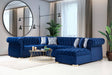 Luxen Velvet Blue RAF Chaise Sectional - BlueÊ is backordered and will ship as soon as it is back in stock.