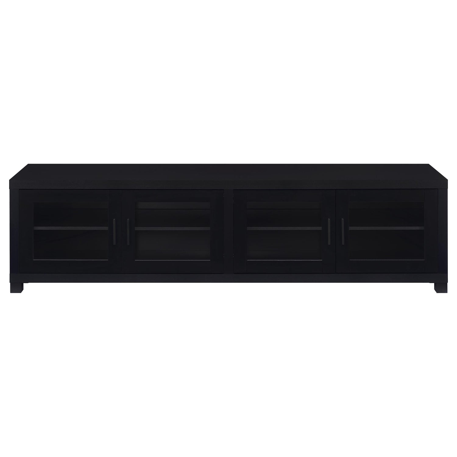 This 79-inch TV stand is the cornerstone of a home entertainment system, designed to anchor your viewing experience with both grandeur and functionality. Accommodating up to an 85-inch television, it brings cinema-scale enjoyment to the comfort of your living room. The quartet of doors opens to reveal adjustable shelves, offering tailored storage for all your media essentials. Crafted from engineered wood, this stand promises stability and longevity, allowing it to be a part of your home's stories for years to come. Its silhouette is as commanding as it is sleek, a testament to design that marries form with function.
