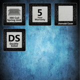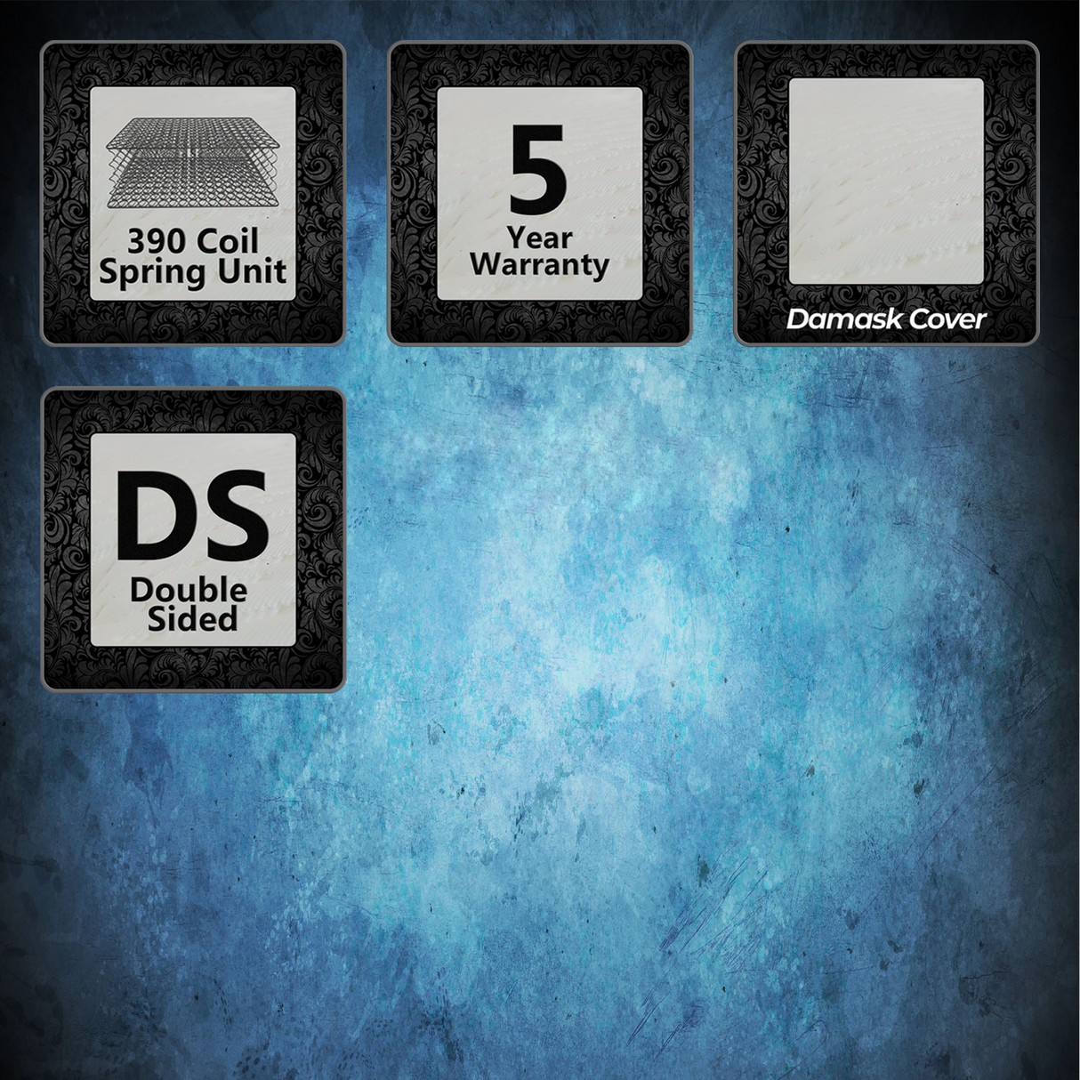 Double-sided, 390 spring, white damask quilted mattress. This is must for any floor.