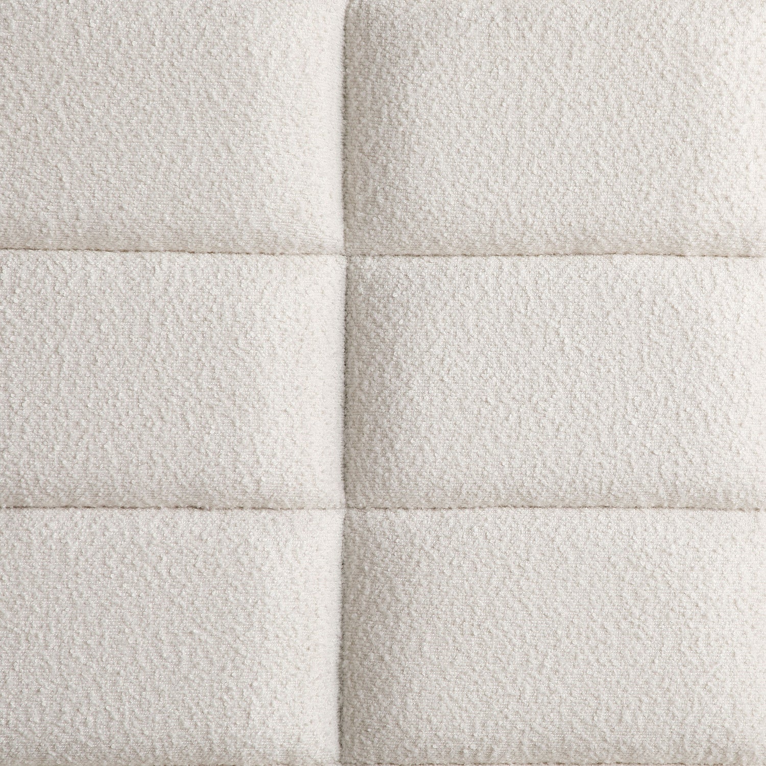 Approachable style infused a modern four-piece bedroom set that centers on a striking upholstered bed. In cream with grid style tufting, the bed presents with a tall headboard and low footboard, creating an open, airy look and feel. A eight-drawer dresser includes a framed mirror, creating a stylish and functional top perfect for everything from morning rituals to decor that adds personality. The set adds a two-drawer nightstand with a shelf, creating ample space for personal items, decor, and a reading lamp at your bedside. The set is complete with Taupe oak wood finish that's soft and neutral to complement a wide variety of linen and decor choices.